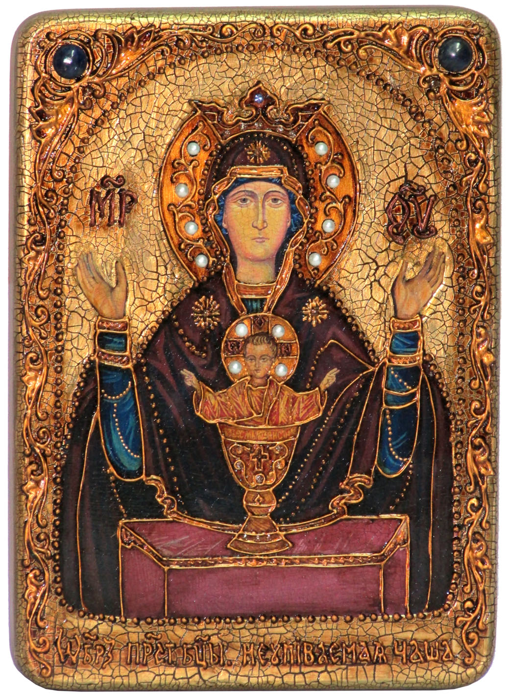 Подарочная икона божией матери "неупиваемая чаша" на мореном дуб Подарочная икона божией матери "неупиваемая чаша" на мореном дуб