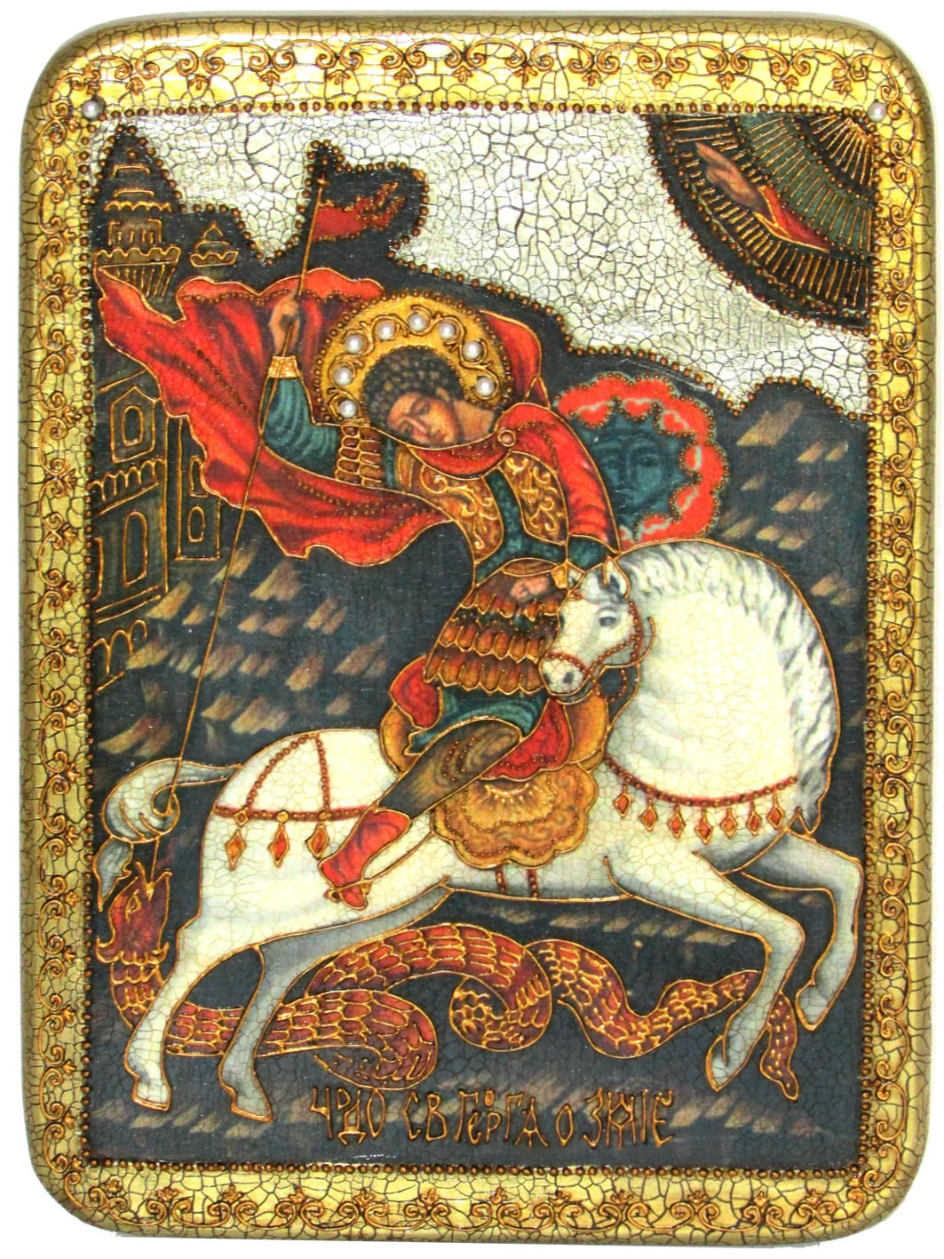 Подарочная икона "чудо святого георгия о змие" на мореном дубе Подарочная икона "чудо святого георгия о змие" на мореном дубе