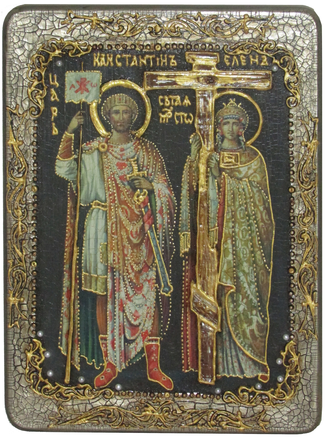 Подарочная икона святые равноапостольные константин и елена на мореном дуб