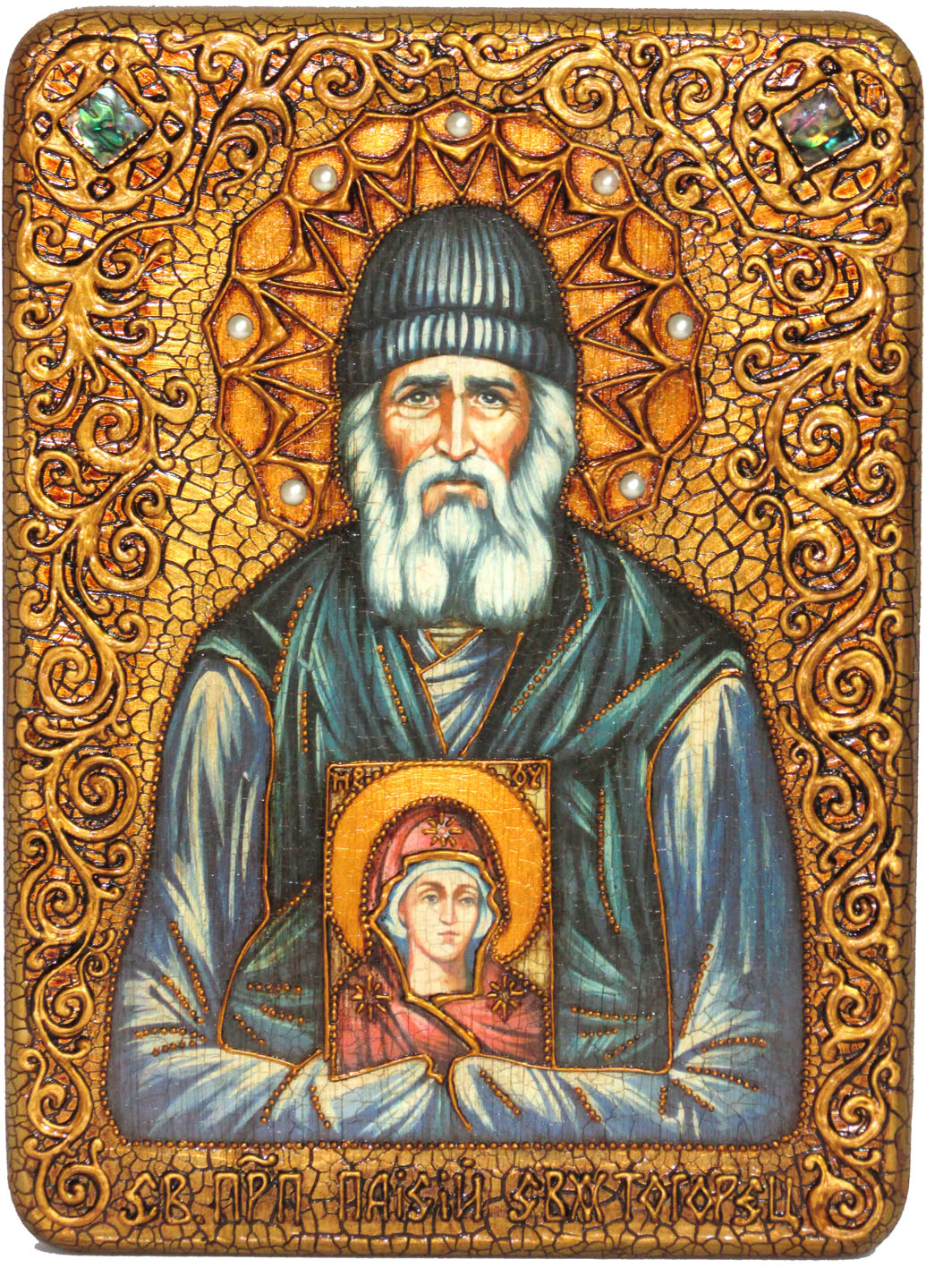 Подарочная икона "паисий святогорец" на мореном дубе Подарочная икона "паисий святогорец" на мореном дубе