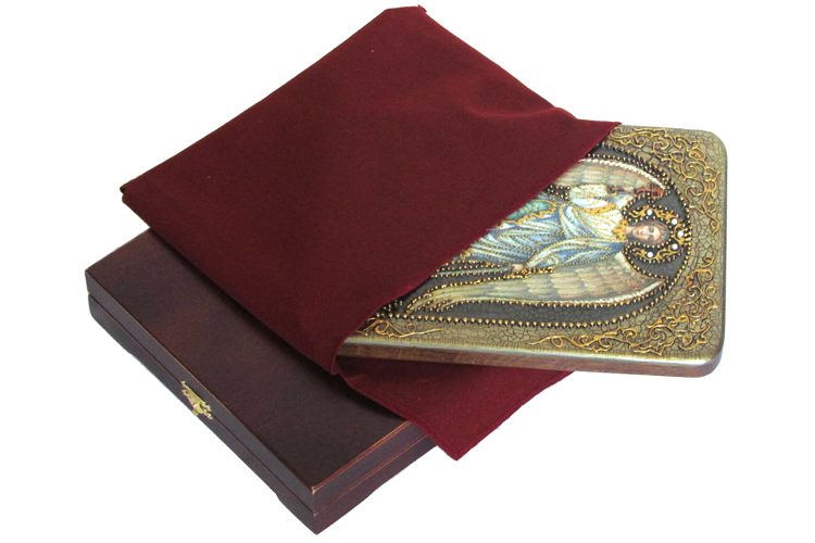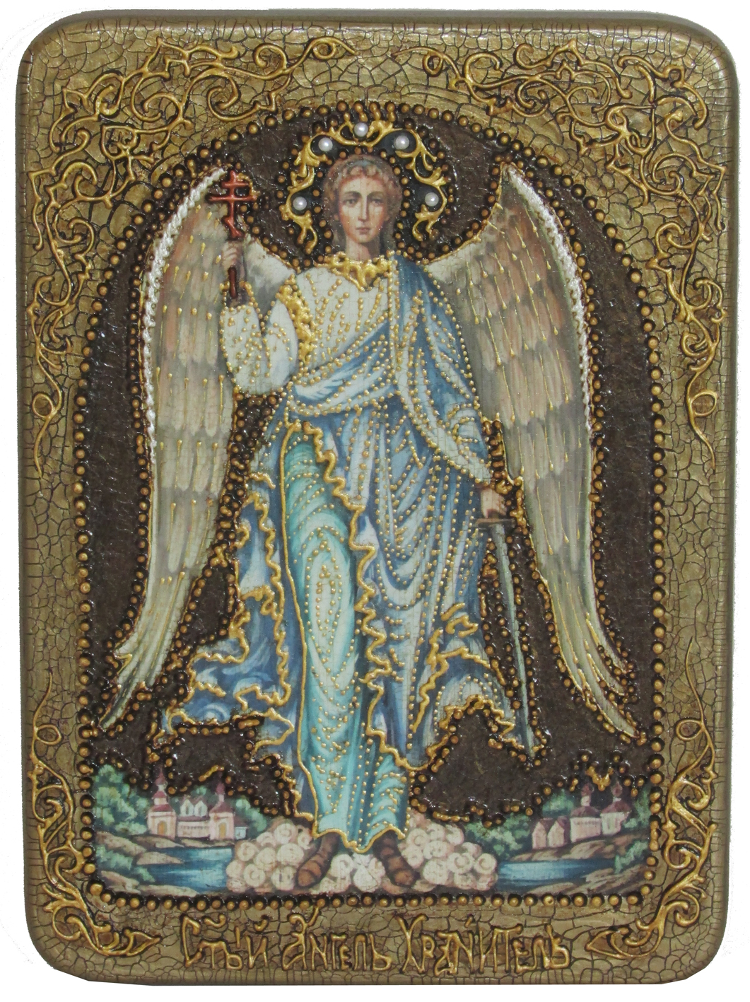 Подарочная икона ангел хранитель на мореном дубе. Образ Ангела - хранителя После крещения по традиции над кроваткой младенца появляется образ Ангела-хранителя. Ангел-хранитель невидимо находится при человеке на протяжении всей его жизни, его задача — способствовать спасению души подопечного. Ангелы-хранители наставляют христиан в вере и благочестии, охраняют их души и тела, заступаются за них в течение земной их жизни, молят о них Бога, наконец, после смерти и отводят их души в вечность. Согласно учению Православной Церкви, личного имени конкретного ангела-хранителя человек знать не может, так как ангел дан человеку Богом и невидим для человека. Поэтому образ Ангела-хранителя является универсальным подарком на все случаи жизни христианина: день рождения, день крещения (крестины), День ангела (именины), юбилей, Рождество, Пасха и т. д. Размер иконы: 21х29см - аналойный. Артикул: RTI-690.m Икона - лучший подарок, потому что, даря икону, мы выражаем человеку высшую степень христианской любви – пожелание спасения души.