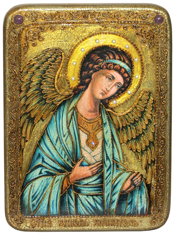 Подарочная икона "ангел хранитель" на мореном дубе. Образ Ангела - хранителя После крещения по традиции над кроваткой младенца появляется образ Ангела-хранителя. Ангел-хранитель невидимо находится при человеке на протяжении всей его жизни, его задача — способствовать спасению души подопечного. Ангелы-хранители наставляют христиан в вере и благочестии, охраняют их души и тела, заступаются за них в течение земной их жизни, молят о них Бога, наконец, после смерти и отводят их души в вечность. Согласно учению Православной Церкви, личного имени конкретного ангела-хранителя человек знать не может, так как ангел дан человеку Богом и невидим для человека. Поэтому образ Ангела-хранителя является универсальным подарком на все случаи жизни христианина: день рождения, день крещения (крестины), День ангела (именины), юбилей, Рождество, Пасха и т. д. Размер иконы: 21х29см - аналойный. Артикул: RTI-691.m Икона - лучший подарок, потому что, даря икону, мы выражаем человеку высшую степень христианской любви – пожелание спасения души.