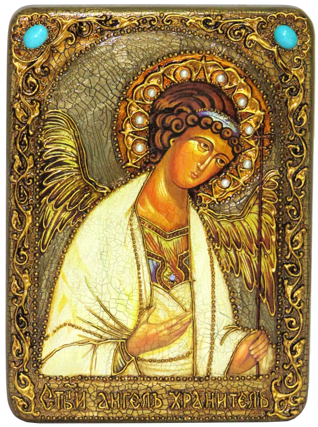 Подарочная икона "ангел хранитель" на мореном дубе. Образ Ангела - хранителя После крещения по традиции над кроваткой младенца появляется образ Ангела-хранителя. Ангел-хранитель невидимо находится при человеке на протяжении всей его жизни, его задача — способствовать спасению души подопечного. Ангелы-хранители наставляют христиан в вере и благочестии, охраняют их души и тела, заступаются за них в течение земной их жизни, молят о них Бога, наконец, после смерти и отводят их души в вечность. Согласно учению Православной Церкви, личного имени конкретного ангела-хранителя человек знать не может, так как ангел дан человеку Богом и невидим для человека. Поэтому образ Ангела-хранителя является универсальным подарком на все случаи жизни христианина: день рождения, день крещения (крестины), День ангела (именины), юбилей, Рождество, Пасха и т. д. Размер иконы: 21х29см - аналойный. Артикул: RTI-693.m Икона - лучший подарок, потому что, даря икону, мы выражаем человеку высшую степень христианской любви – пожелание спасения души.