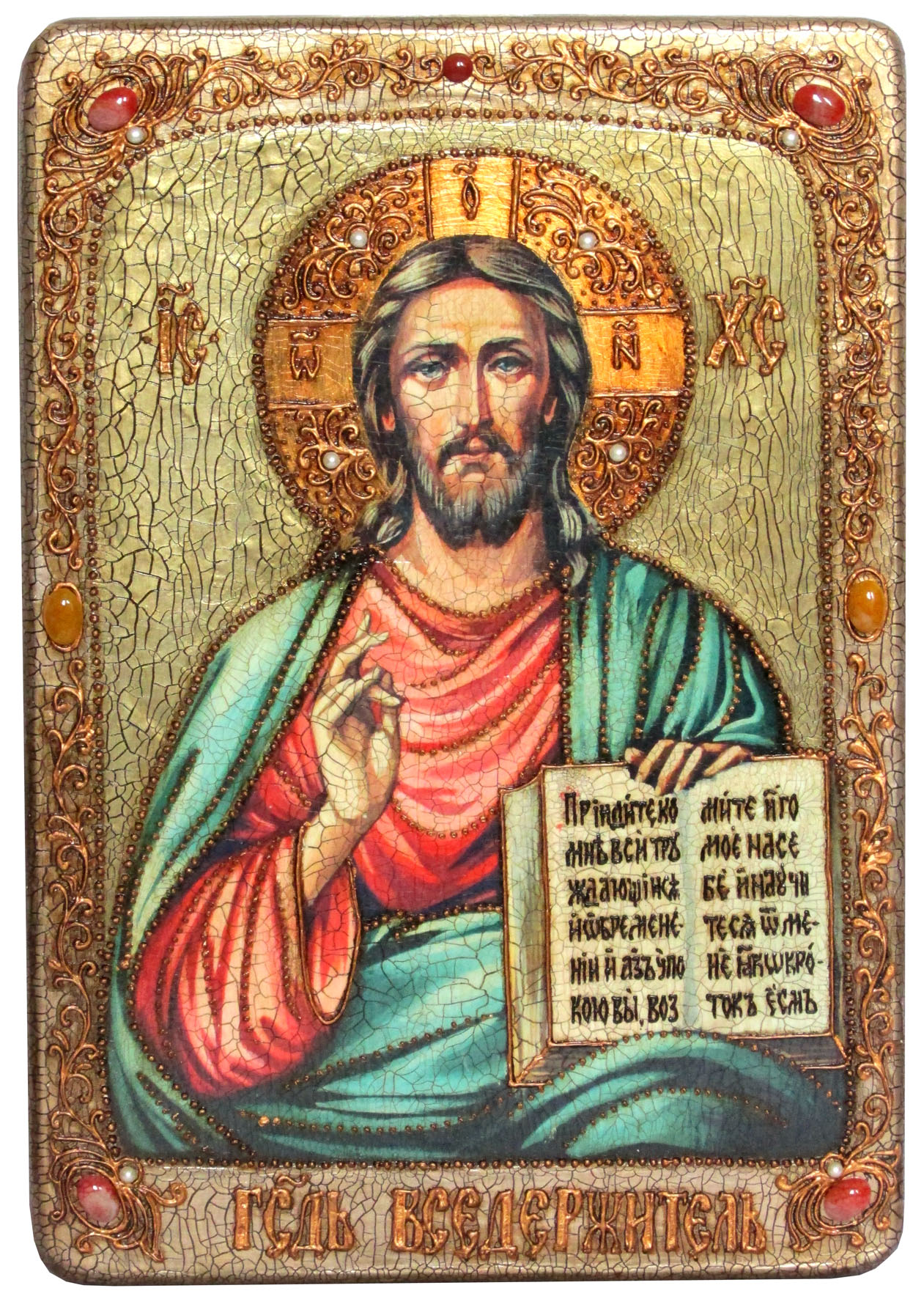 Большая подарочная икона "господь вседержитель" на мореном дубе