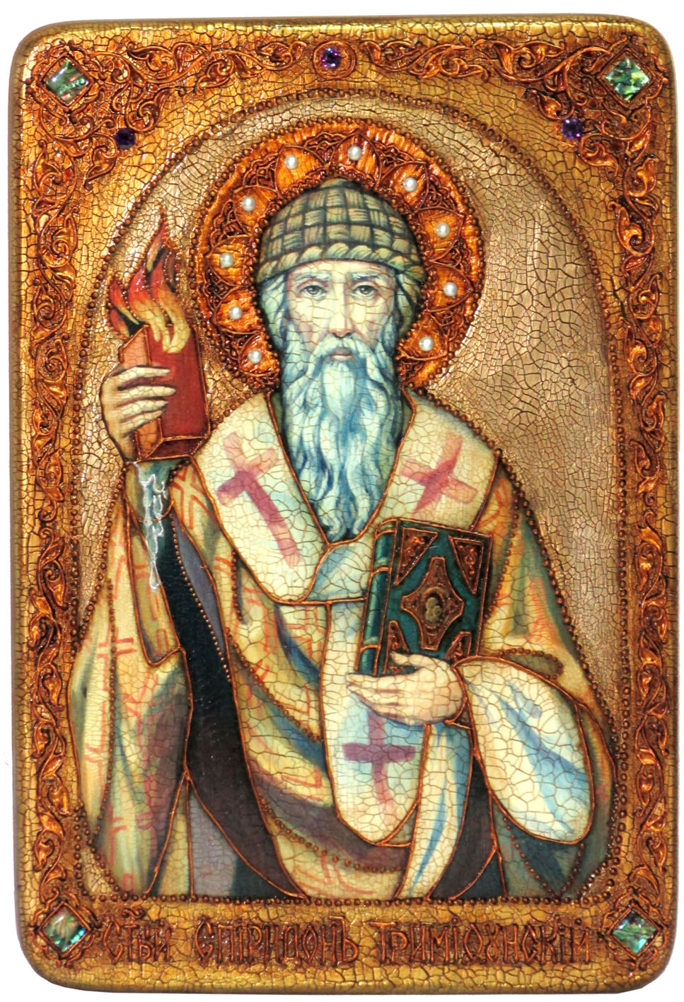 Большая икона "святитель спиридон тримифунтский" на мореном дубе