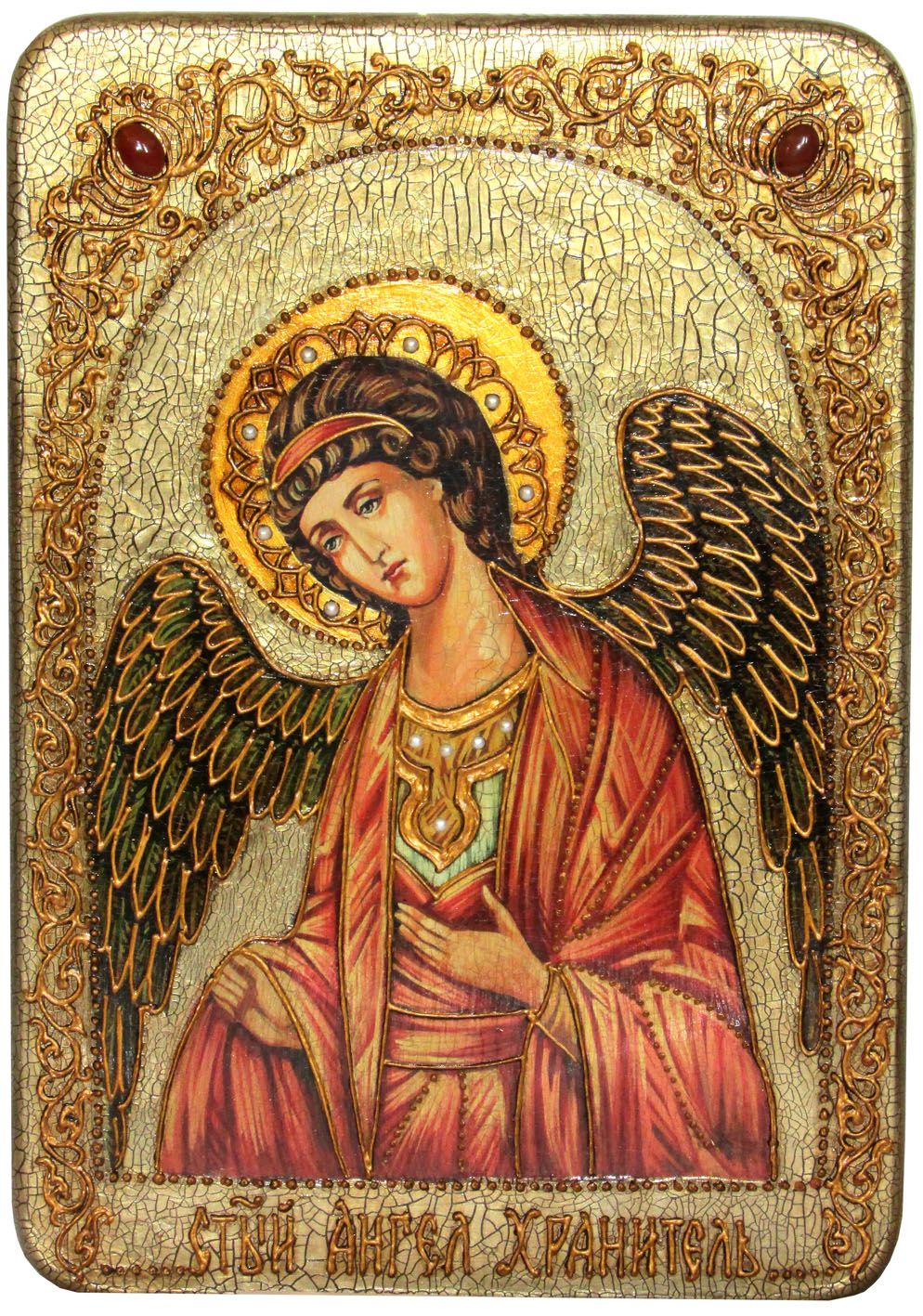 Большая подарочная икона "ангел хранитель" на мореном дубе. Образ Ангела - хранителя После крещения по традиции над кроваткой младенца появляется образ Ангела-хранителя. Ангел-хранитель невидимо находится при человеке на протяжении всей его жизни, его задача — способствовать спасению души подопечного. Ангелы-хранители наставляют христиан в вере и благочестии, охраняют их души и тела, заступаются за них в течение земной их жизни, молят о них Бога, наконец, после смерти и отводят их души в вечность. Согласно учению Православной Церкви, личного имени конкретного ангела-хранителя человек знать не может, так как ангел дан человеку Богом и невидим для человека. Поэтому образ Ангела-хранителя является универсальным подарком на все случаи жизни христианина: день рождения, день крещения (крестины), День ангела (именины), юбилей, Рождество, Пасха и т. д. Размер иконы: 42х29 см Артикул: RTI-792.m Икона - лучший подарок, потому что, даря икону, мы выражаем человеку высшую степень христианской любви – пожелание спасения души.