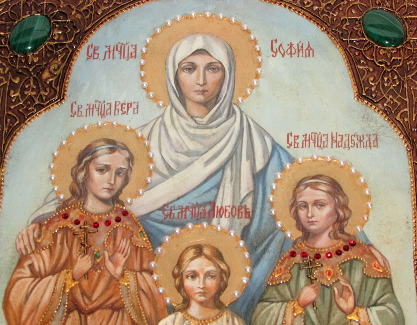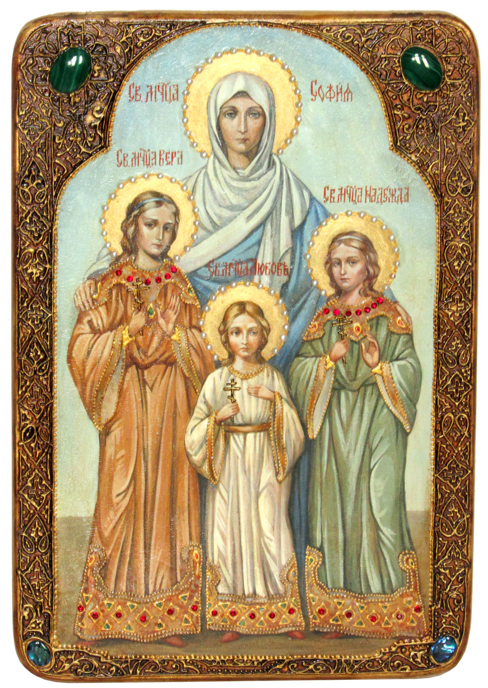 Живописная икона "вера, надежда, любовь и мать их софия" на кипа.