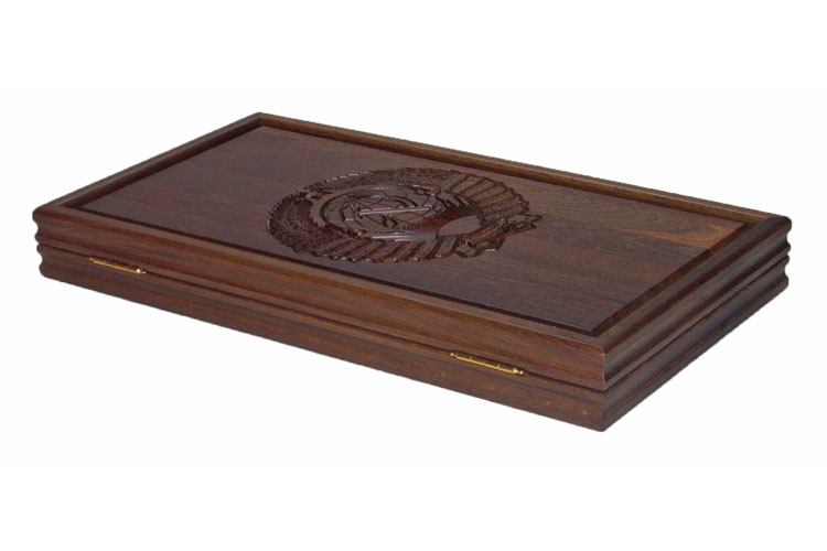 Резные нарды из массива мореного дуба ссср. Артикул: [RTN-025.m] Наименование: Резные нарды из массива мореного дуба СССР Размер: 58 х 63 см Описание: Материал: Дуб мореный Технология: Резьба по массиву Ориентируясь на потребности наших заказчиков, мы модернизировали размеры досок ЕВРО-стандарта. Теперь они наиболее приближены к квадратной форме. Игра стала более простой, динамичной, просматриваемой.Самая ностальгическая доска Евро-стандарта. На лицевой стороне изображен герб СССР: серп и молот на фоне земного шара, в лучах солнца и в обрамлении колосьев, с надписью на языках союзных республик - «Пролетарии всех стран, соединяйтесь!». Эта доска соответствует всем основным запросам любителей игры в нарды: - Деревянные фишки из самшита с углублением по центру. Диаметр фишки 29 мм - Возможность выставить все фишки вдоль края поля, что важно при игре в длинные нарды- Удобные ячейки из массива мореного дуба- Ложемент для хранения фишек и костей по краю поля На оборотной филенке вырезана доска для игры в шашки и шахматы.Ячейки могут быть пронумерованы в соответствии с нормами спортивных ассоциаций России. Упаковка: транспортная картонная коробка. ВАЖНО: Нарды будут иметь такой же резной рисунок, у них будет такая же фурнитура и точно так же будут выделены стрелки на поле, НО рисунок дерева неповторим. Поэтому Вы не сможете получить точно такие же нарды, как на сайте.