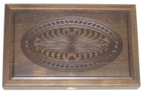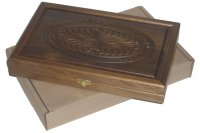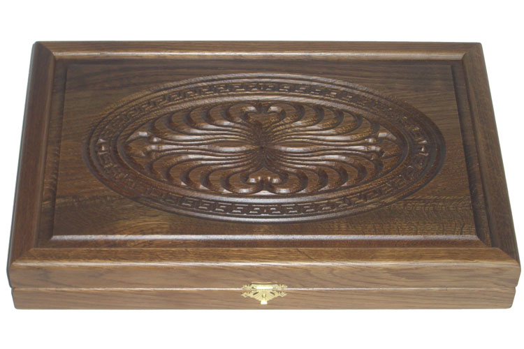 Артикул: [RTN-32.M] Наименование: Резные дорожные нарды из массива мореного дуба Размер: 36 х 46 см Описание: Материал: Дуб Технология: Резьба по массивуОдна из лучших досок дорожного размера. Размер не самый маленький (встречаются нарды и меньших размеров), однако нашей целью было создать нарды минимального из УДОБНЫХ размеров. Эта доска соответствует всем основным запросам любителей игры в нарды: - Деревянные фишки из массива березы с углублением по центру легко перемещаются пальцами. Диаметр фишки 19 мм - Возможность выставить все фишки вдоль края поля, что важно при игре в длинные нарды - Удобные ячейки из массива мореного дуба - Ложемент для хранения фишек и костей по краю поля С внешней стороны на лицевой филенке вырезан древний восточный рисунок с двумя зеркальными витиеватыми узорами. На оборотной филенке вырезана доска для игры в шашки. Упаковка: транспортная картонная коробка. ВАЖНО: Нарды будут иметь такой же резной рисунок, у них будет такая же фурнитура и точно так же будут выделены стрелки на поле, НО рисунок дерева неповторим. Поэтому Вы не сможете получить точно такие же нарды, как на сайте. Для того, чтобы игра в нарды доставила Вам еще большее удовольствие, предлагаем заменить фишки штатной комплектации на изысканные фишки из экзотического самшита и золотистого розового дерева, диаметром 19 мм, которые помогут дополнить эту игру еще и замечательным звучанием драгоценных пород деревьев.