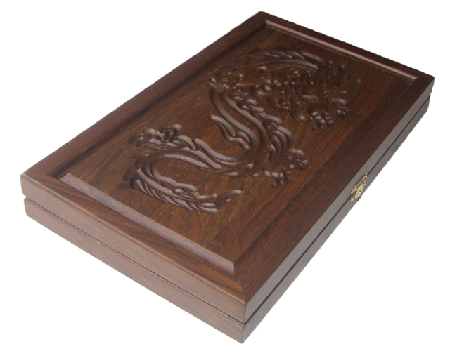 Резные дорожные нарды из массива мореного дуба без ложемента дракон 35х40.