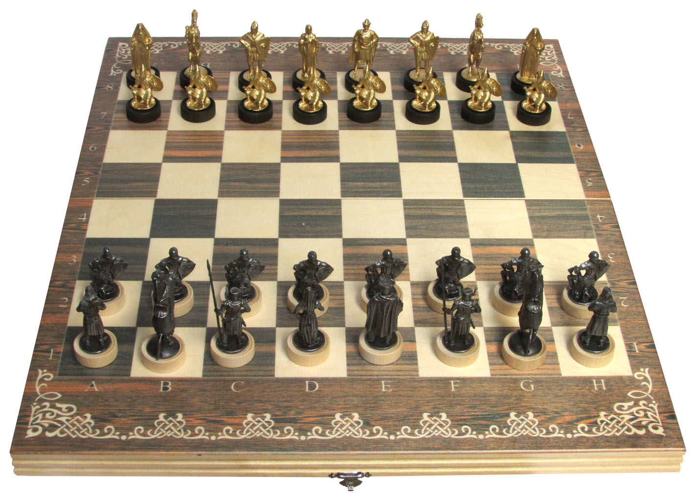 Шахматы исторические "ледовое побоище" с фигурами из черненого ц. Артикул: [RTS-04.c] Наименование: Шахматы исторические Ледовое побоище с фигурами из черненого цинкового сплава Размер: 50 х 60 см Описание: Материал фигур: Цинковый сплав Технология: ЛитьёМатериал доски: БерезаЛедовое побоище На рассвете 5 апреля 1242 года рыцари Ливонского ордена построились свиньей на льду Чудского озера. В кольчугах и шлемах, с длинными мечами, они казались неуязвимы. Навстречу им Александр Невский выстроил новгородское войско тылом к обрывистому крутому восточному берегу озера. Избранная позиция была выгодна тем, что немцы наступавшие по открытому льду, были лишены возможности определить расположение, численность и состав русской рати. Выставив длинные копья, немцы атаковали центр, однако, наткнувшись на обрывистый берег озера, малоподвижные, закованные в латы рыцари не могли развить свой успех. Наоборот, рыцарская конница скучилась так как задние шеренги рыцарей подталкивали передние шеренги которым негде было развернуться для боя. Фланги русского боевого порядка не позволили немцам развить успех операции. Немецкий клин оказался зажатым в клещи. В это время дружина Александра нанесла удар с тыла и завершила окружение противника… Некоторым рыцарям удалось вырваться из окружения, и они пытались бежать в своих тяжелых доспехах по льду озера. Новгородцы преследовали остатки бежавшего в беспорядке рыцарского войска вплоть до противоположного берега, семь верст. Ледовое побоище стало первым случаем в истории военного искусства, когда тяжелая рыцарская конница была разбита в полевом бою войском, состоявшим в большей части из пехоты. Русский боевой порядок оказался более гибким, в результате чего удалось осуществить окружение противника, боевой порядок которого представлял собой малоподвижную массу. Шахматы «Ледовое побоище» являются идеальным подарком любому человеку, основной работой которого является взаимодействие с другими людьми, - именно здесь важна гибкость в подходах и легкая маневренность.