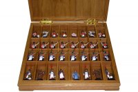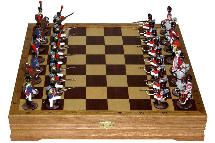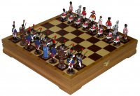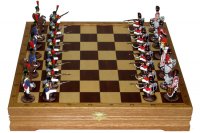 Артикул: [RTS-56.d] Наименование: Шахматы исторические с фигурами из олова покрашенными в полу коллекционном качестве Размер: 43 х 43 см Описание: Материал: Цинковый сплав Технология: ЛитьёБитва при Ватерлоо Ватерлоо небольшое селение в Бельгии недалеко от Брюсселя. Своей широкой известностью оно обязано событиям, произошедшим вблизи него 18 июня 1815 года. В этот день произошло сражение, положившее конец политической и военной деятельности императора Наполеона I. Наполеон вступил в Бельгию со 120-тысячной армией. Его целью было разбить по очереди англо-голландскую армию под командованием английского фельдмаршала А. Веллингтона и затем прусскую армию под командованием фельдмаршала Г. Л. Блюхера. Свои главные силы Наполеон направил к Ватерлоо против английской армии. Силы союзников доходили до 70 тысяч человек, при 159 орудиях, силы французов — до 72,5 тысяч, при 240 орудиях. Сражение длилось с 12 часов дня до 8 часов вечера. Упорные фронтальные атаки французских войск были отбиты с большими для них потерями, однако и резервы фельдмаршала Веллингтона были на исходе. В разгар боя с востока неожиданно подошли прусские корпуса и ударом во фланг решили исход сражения. Французы потеряли в сражении при Ватерлоо все орудия, 2 знамени, весь обоз и более 30 тысяч убитыми, ранеными и пленными; урон союзников доходил до 22 тысяч человек. Беспорядочный отход французов превратился в бегство. Наполеон бросил остатки армии и бежал в Париж с тремя тысячами солдат, - армией, с которой нельзя уже было ни защищать столицу, ни продолжать войну. …А ведь всё могло бы случиться иначе, обладай император Франции точной информацией о численности и точном местонахождении противников. Ведь основной принцип, которым руководствовался Наполеон в тот момент – «Разделяй и властвуй!», - ещё со времен Древнего Рима демонстрирует свою состоятельность. Шахматы «Битва при Ватерлоо» и «Битва при Ватерлоо (с шотландцами)», с фигурками солдат армий Наполеона и Веллингтона, являются идеальным подарком для людей принимающих решения в нашем быстро меняющемся мире. Метафоричный смысл этой битвы – «предупреждён значит вооружен», - будет близок людям которые по опыту знают как важна свежая и объективная информация.