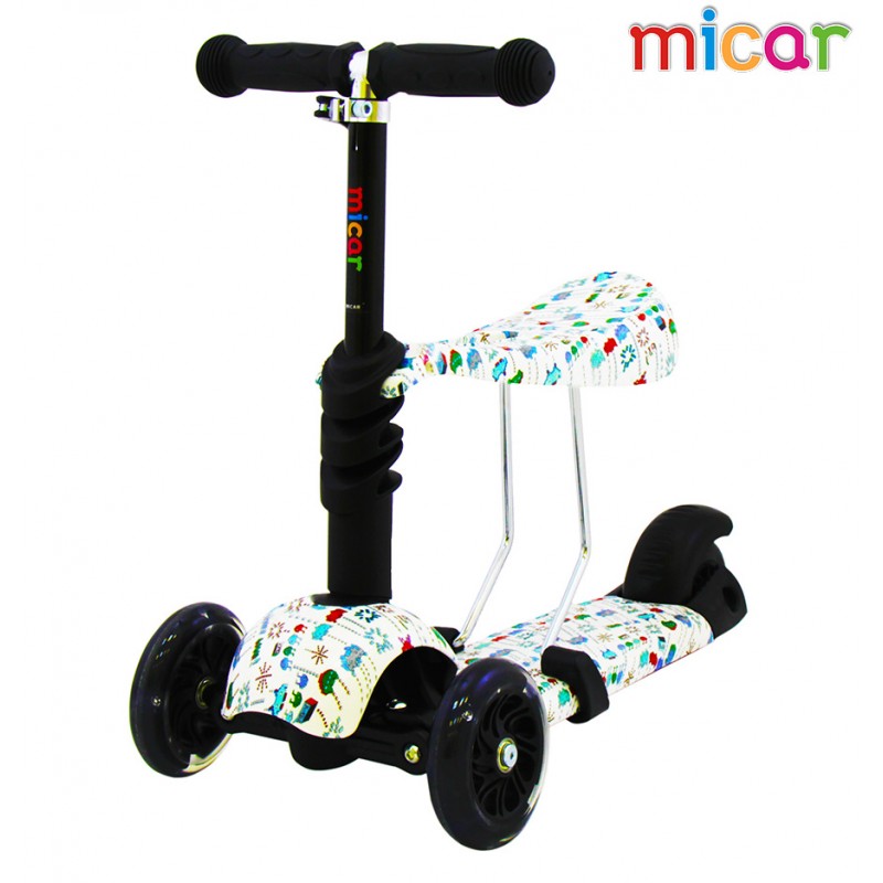Детский трёхколёсный самокат беговел Scooter Micar Rider 3 в 1 с сиденьем