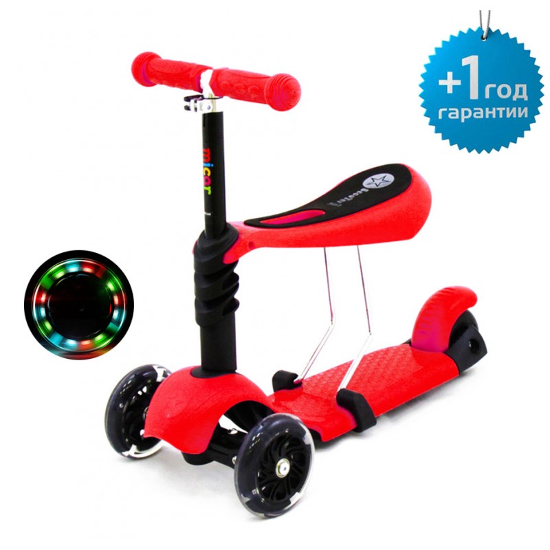 Детский трёхколёсный самокат беговел Scooter Micar Rider 3 в 1 с сиденьем
