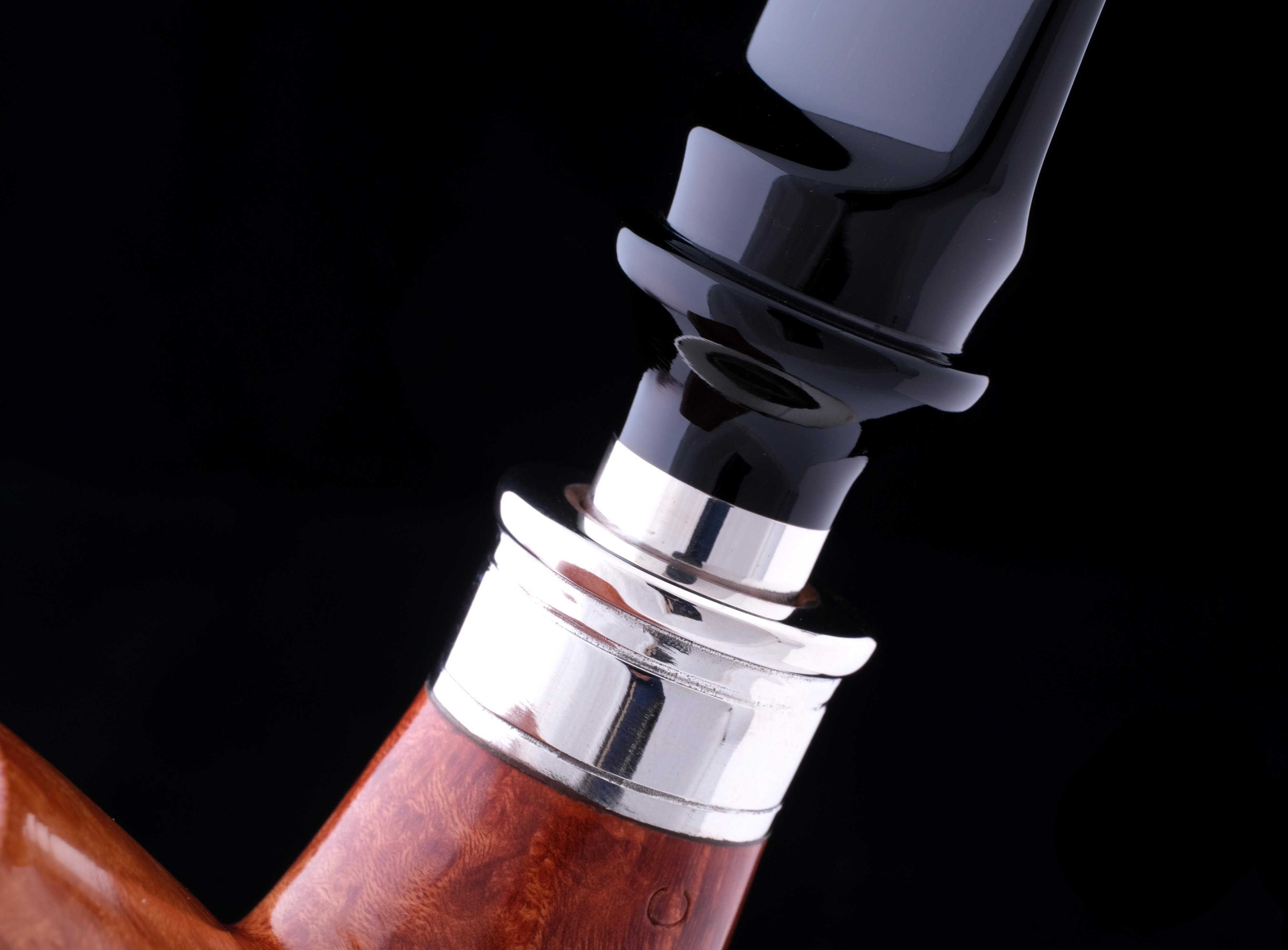 Трубка ser jacopo la fuma delecta c. Трубка Ser Jacopo серии La Fuma. Двойное кольцо на чубуке и мундштуке модели Delecta выполнено из массива серебра 925 пробы. На трубке выбит девиз La Fuma fiche tira («Дымится пока курится», ит.), маркировки: Ser Jacopo, Hand made in Italy, Delecta, грэйд C. Мундштук из акрила. Фильтр 9 мм. Вес 93 грамма. Длина трубки 16 см. Диаметр табачной камеры 20 мм., глубина 48 мм. В комплекте подарочная коробка, кисет для трубки и буклеты компании Ser Jacopo. Материал Бриар, акрил, серебро Производитель Ser Jacopo, Италия