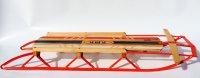 Металлические санки с деревянным сидением и рулем управления красные Металлические санки с деревянным сидением и рулем управления красные