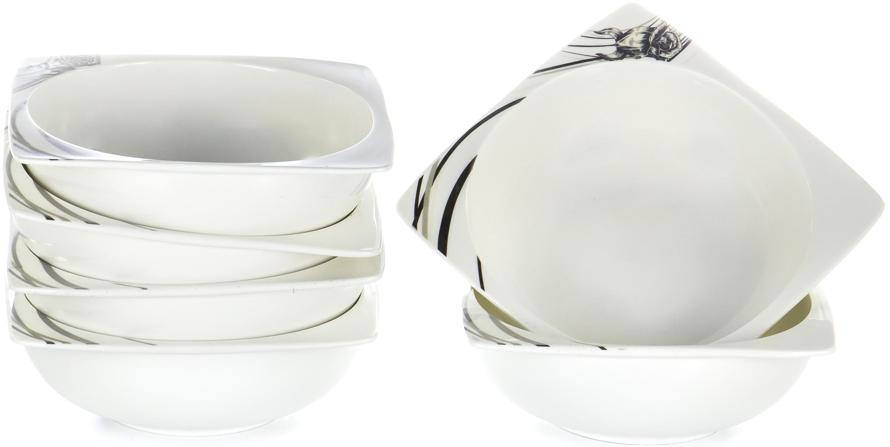 Набор салатников белый квадрат «роза» 600 мл, 6 предметов