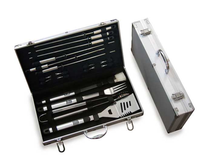 Sc007 набор для гриля green glade. Набор для гриля из 18 предметов обязательно пригодится вам во время отдыха на природе с семьей или друзьями. С помощью приспособлений, входящих в комплект, вы сможете приготовить замечательные блюда на гриле или мангале на свежем воздухе. Все предметы умещаются в удобный металлический чемоданчик, который можно в любой момент взять с собой. • Комплектация: лопатка для гриля (48х9 см); щипцы для гриля (47х6 см); вилка для гриля (45х2,8 см); щетка для гриля (43,5х3,5 см); шампуры (53,5х0,5 – 6 штук); вилка для кукурузы (6х2 см – 8 штук); металлический чемодан • Материал: сталь • Вес нетто: 2,45 • Размер: • Цвет: серый • Упаковка: металлический чемодан • Размер индивидуальной упаковки (чемоданчик): 51,5x33,5x29 см • Количество в коробке: 4 штуки • Размер коробки: • Вес брутто: 10,48 кг • Производитель: Green Glade • Страна: Китай