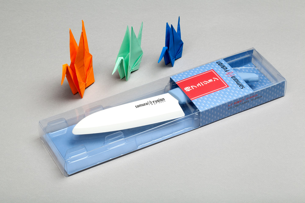 Нож кухонный сантоку 145 мм, циркониевая керамика, (голубой) Samura Fusion