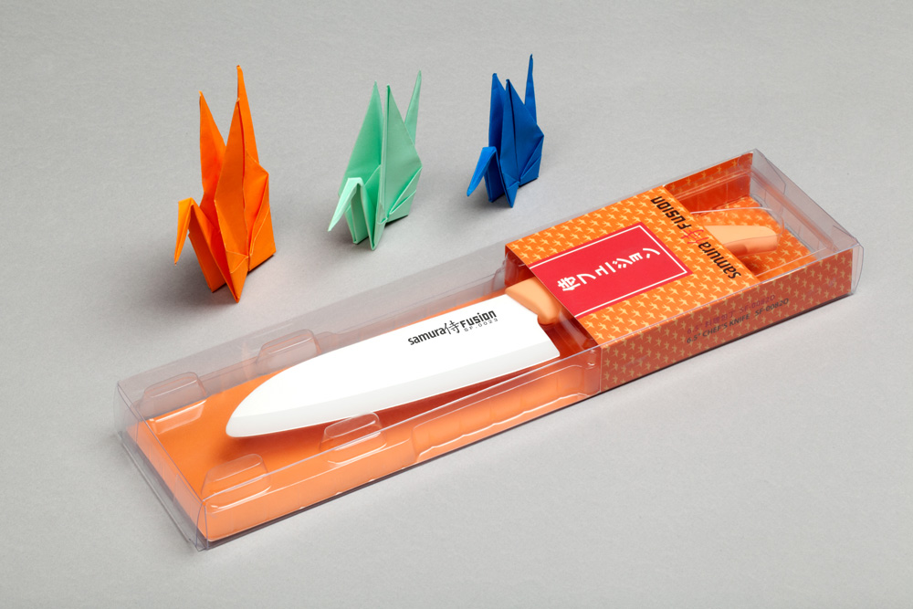 Нож кухонный сантоку 145 мм, циркониевая керамика,(оранжевый) Samura Fusio