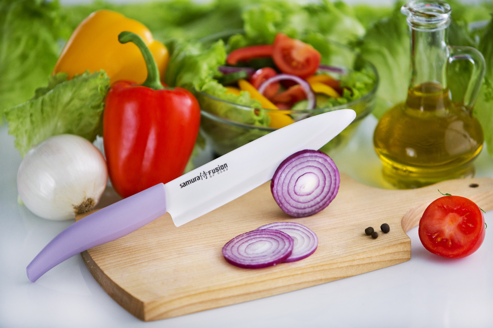 Нож кухонный шеф 167 мм, циркониевая керамика, (сиреневый) Samura Fusion