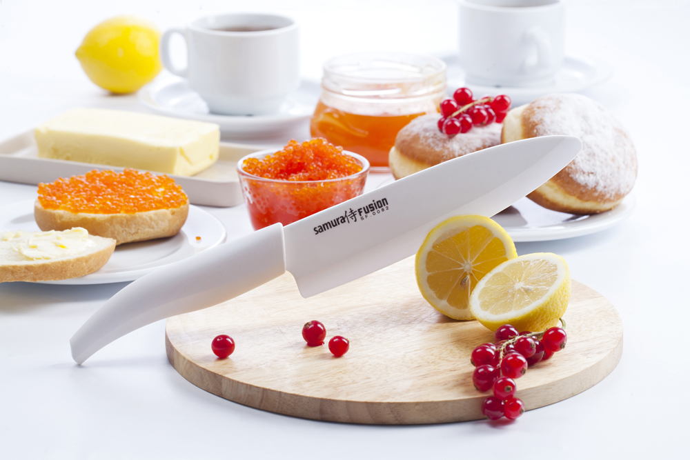 Нож кухонный шеф 167 мм, циркониевая керамика, (белый) Samura Fusion