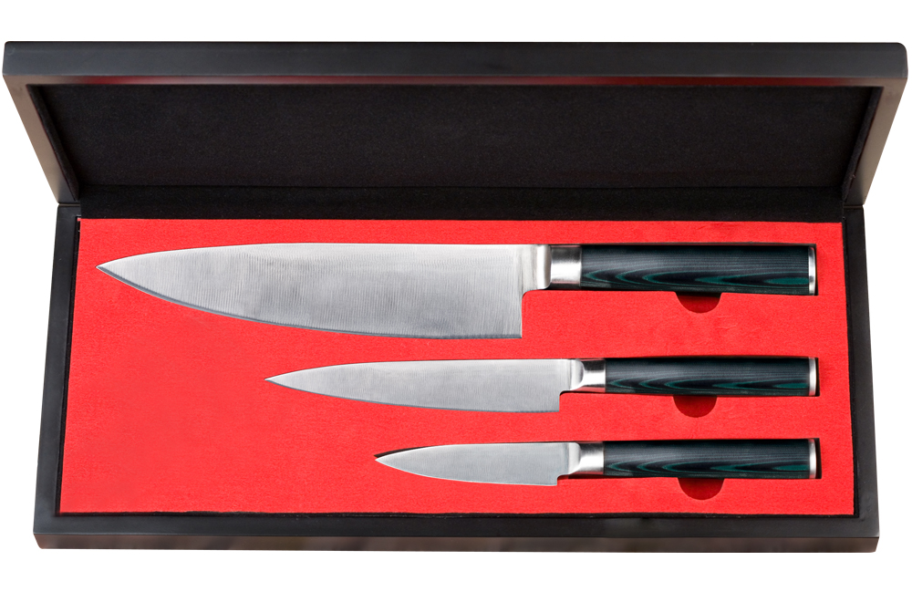 Набор подарочный из 3 кухонных ножей поварская тройка Samura
