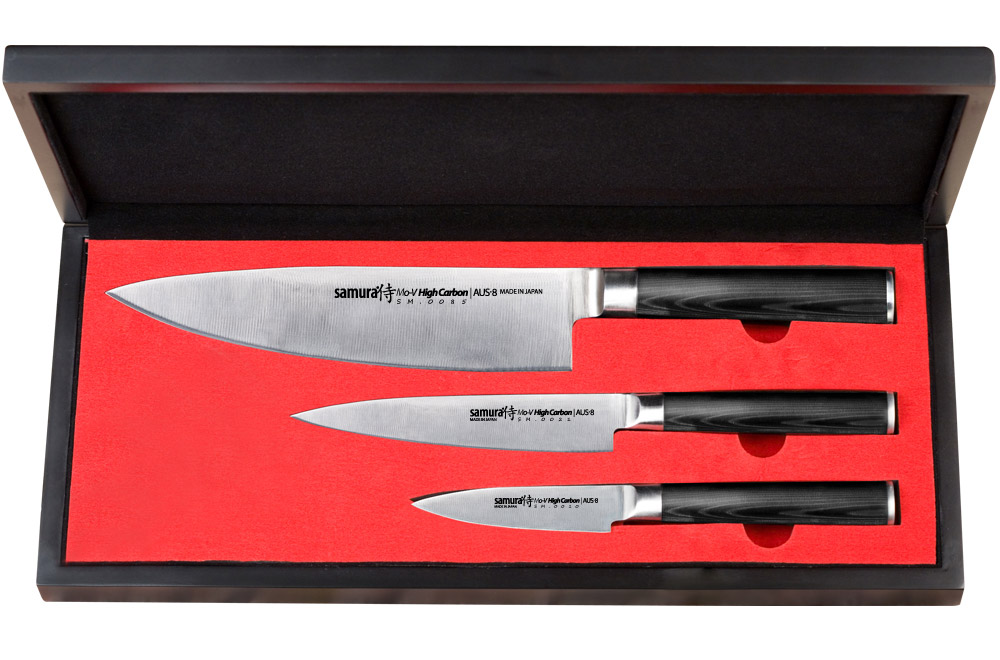 Набор из 3 ножей в подарочной коробке "поварская тройка" Samura Mo-v Sm-02