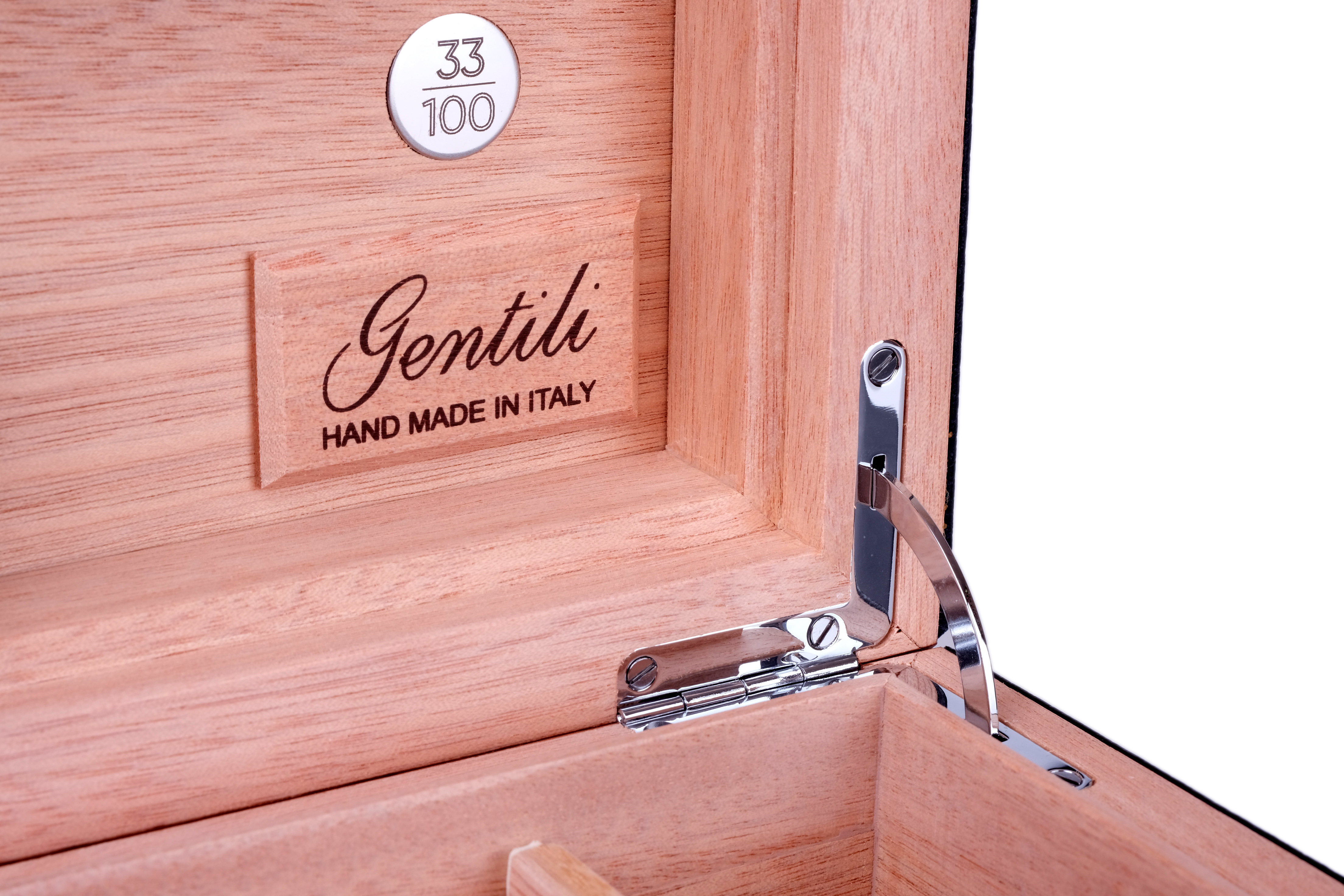 Хьюмидор gentili black на 40 сигар limited edition. Хьюмидор премиум-класса на 40 сигар лимитированной серии из 100 штук от итальянских мастеров фабрики Fabrizio Gentili SRL. Исполнен в классическом итальянском стиле — элегантное сочетание лучших материалов в единое целое: дерева, кожи, металла. Корпус представляет собой комбинацию нескольких видов дерева, что обеспечивает стойкость к деформации при колебаниях температуры и влажности. Внутренняя отделка выполнена из испанского кедра, снаружи шпон Эбенового дерева из Индонезии, покрытый 7-ю слоями лака, а также натуральная телячья кожа. На внутренней стороне крышки — табличка с порядковым номером изделия в серии из 100 шт. В комплекте увлажнитель с акриловым полимером, итальянский гигрометр, фирменный буклет Gentili с информацией о компании и мультиязычной инструкцией по уходу. Подарочная упаковка. Ручная работа, сделано в Италии. Официальный сайт производителя: https://www.gentili-italy.com Материал Телячья кожа, Индонезийское эбеновое дерево, Испанский кедр Производитель GENTILI, Италия Размер 30х20х12, внутренний 25х14,8х8, вес 3 кг