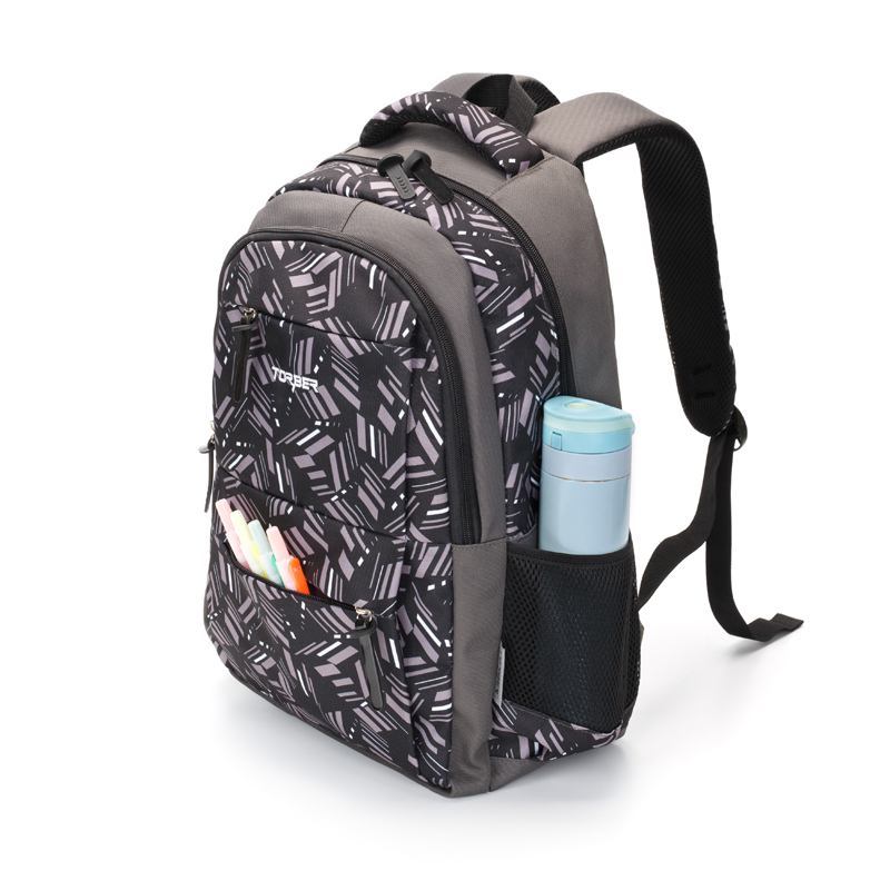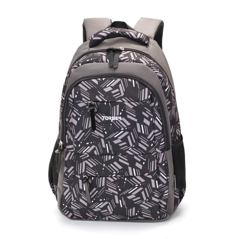 Рюкзак Torber Class X, серый с орнаментом, полиэстер, 45 X 30 X 18 см