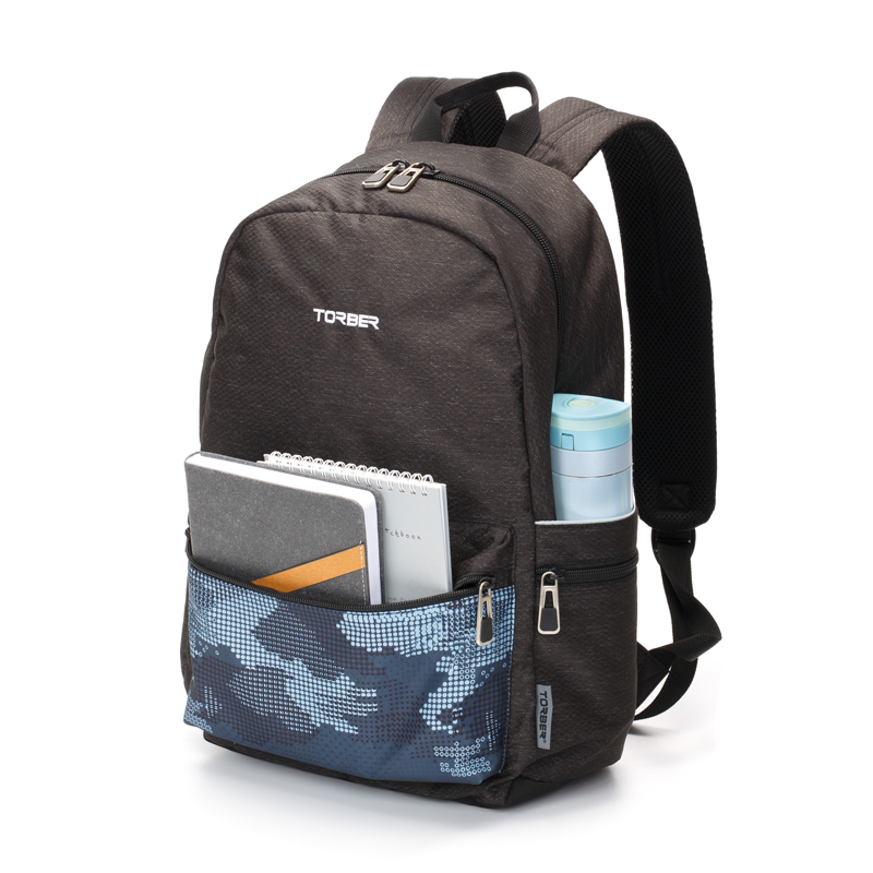 Рюкзак Torber Graffi, серый с карманом синего цвета, полиэстер, 44 X 31 X