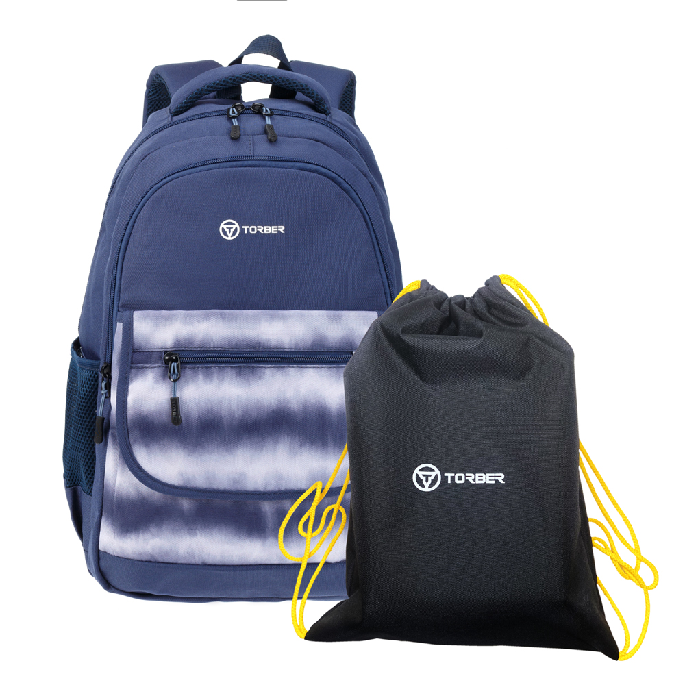 Рюкзак Torber Class X, темно-синий с орнаментом, 45 X 30 X 18 см + мешок д