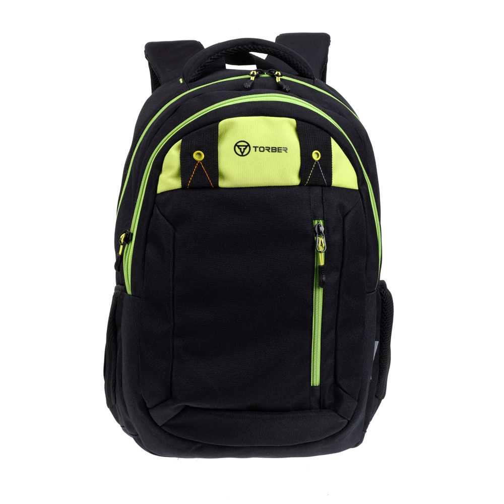 Рюкзак Torber Class X, черный с зеленой вставкой, полиэстер 900d, 45 X 32