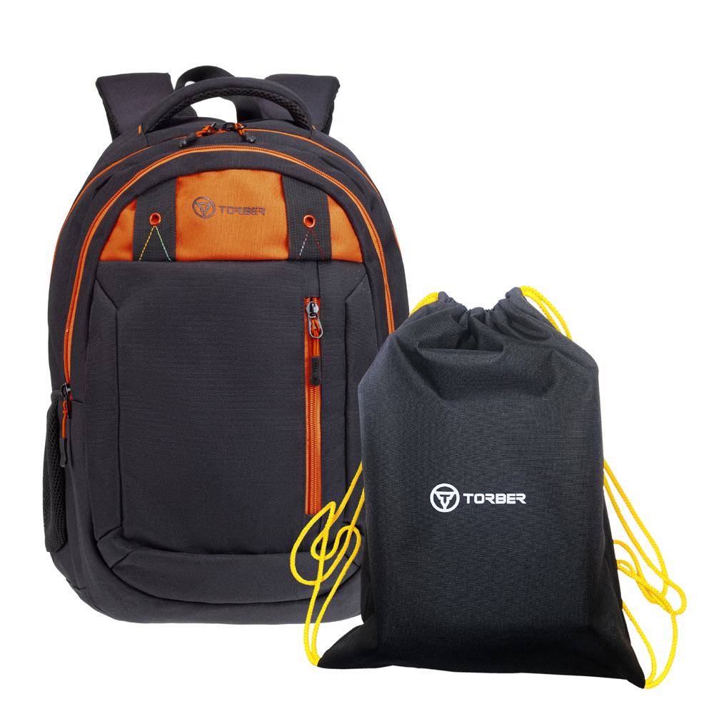 Рюкзак Torber Class X, черный с оранжевой вставкой, 45 X 32 X 16см+мешок д