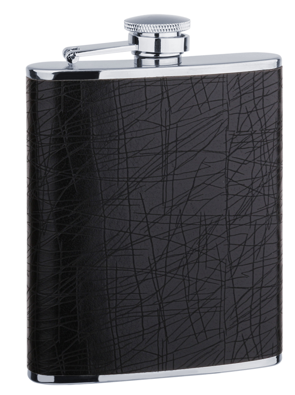 Фляга S.Quire 0,24 л, сталь+искусственная кожа, черная