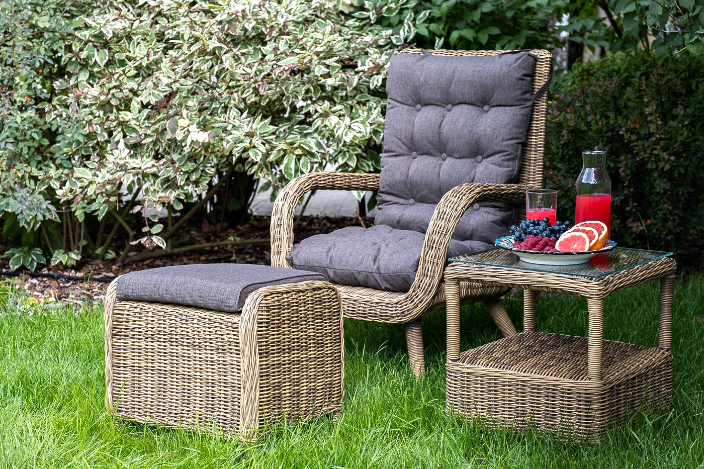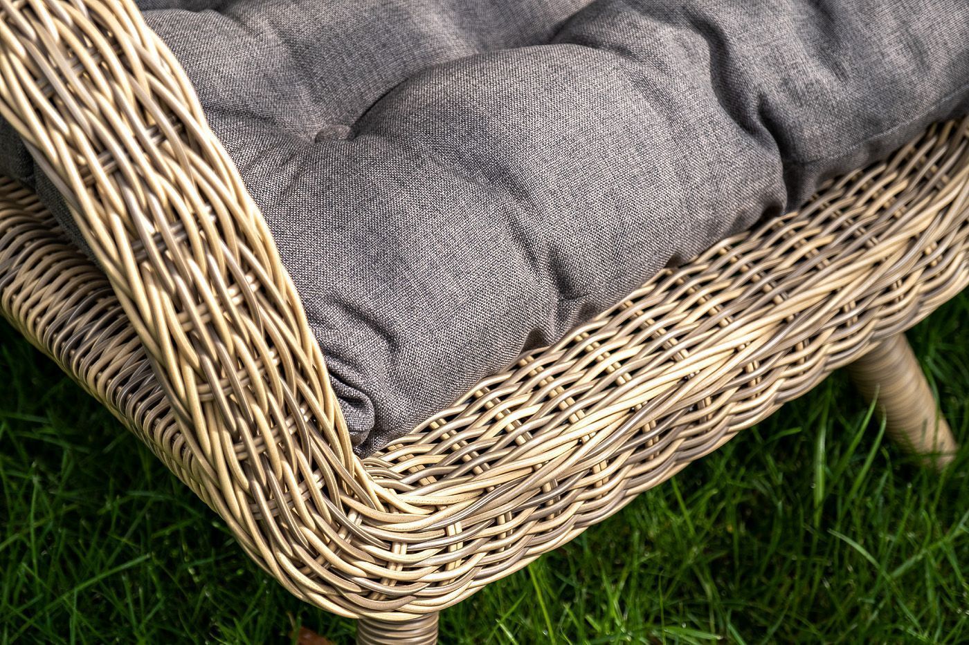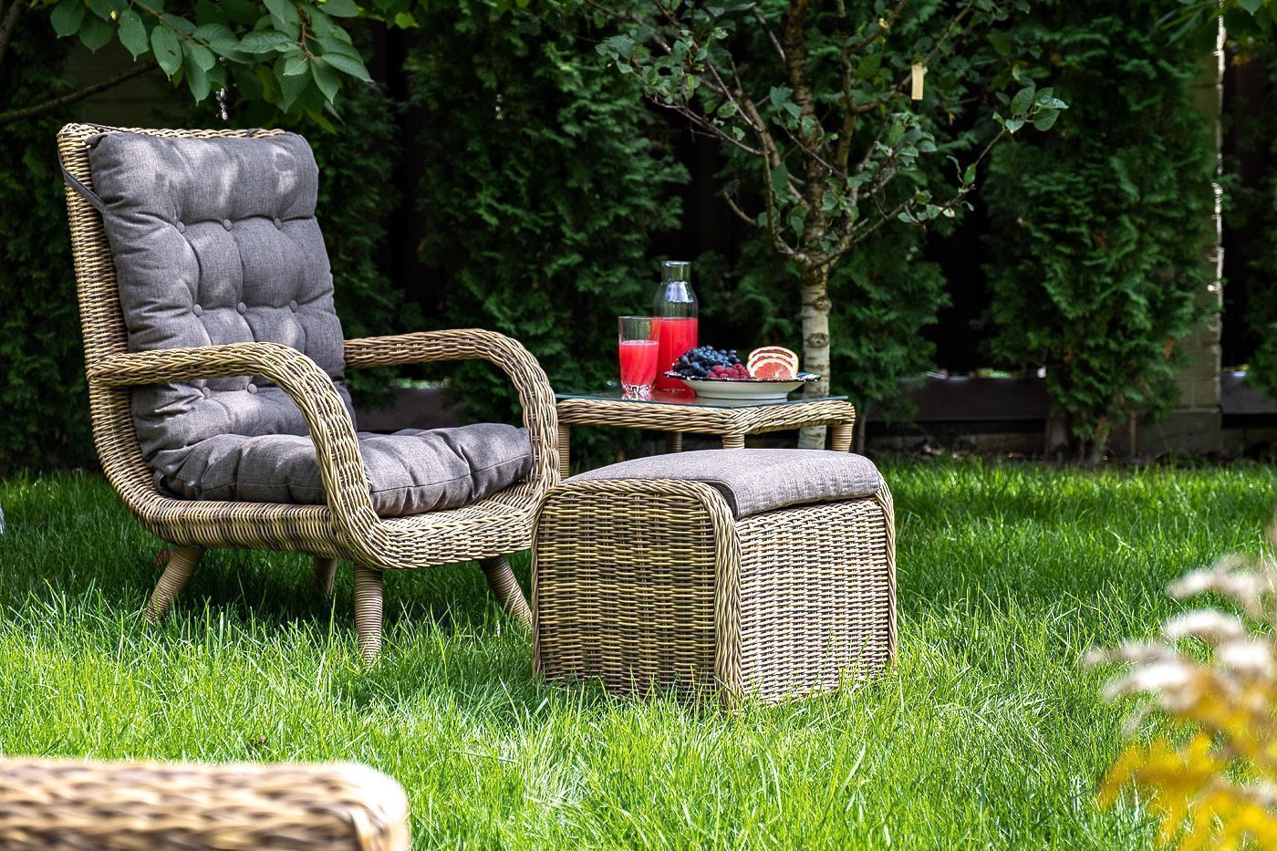 Толедо лаунж-зона из искусственного ротанга, цвет соломенный. Одноместная лаунж-зона Толедо для зоны отдыха выполнена из круглого искусственного ротанга в натуральном соломенном цвете. Состоит из: - одного кресла - 680x760x900 мм - одного пуфа - 510x420x470 мм - одного журнального столика - 450x450x520 мм Каркас - прочный алюминий, который выдерживает нагрузки до 150 кг. Кресло и пуф укомплектованы подушками со съемными чехлами из влагостойкого 100 #37;-го полиэстера. Габариты товара (ДШВ) 1640x760x900мм Габариты упаковки (ДШВ) 164/76/90 Материал плетения искусственный ротанг Цвет плетения соломенный Вид ротанга круглый Материал каркаса (стул/кресло/диван) алюминий Материал подушки полиэстер 100% плотностью 230гр/м2 с влагоотталкивающей пропиткой Цвет подушки серо-коричневый Вес (Брутто) 27 Вес (Нетто) 24кг
