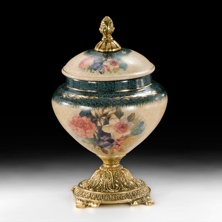 Конфетница фарфоровая C росписью в бронзовой оправе