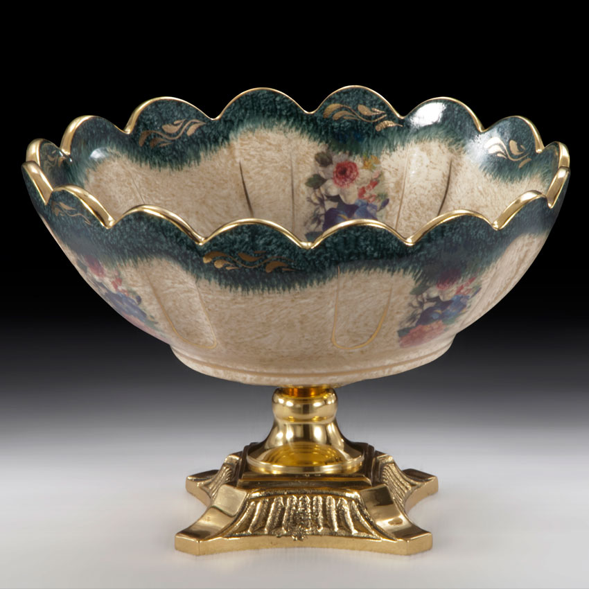 Ваза для фруктов фарфоровая C росписью в бронзовой оправе