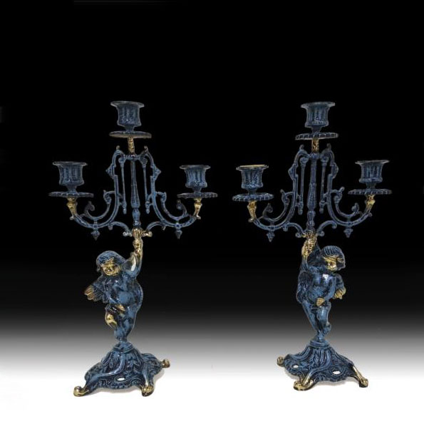 Пара канделябров на 3 свечи крылья ангела. Страна:ИСПАНИЯ Материал:бронза Размер:23х40H см Производство: VIRTUS 1945
