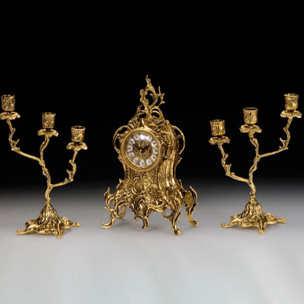 Часы каминные лоза с канделябрами на 3 свечи, набор из 3 предм.