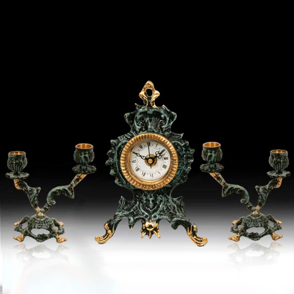 Часы настольные собор малые с канделябрами на 2 свечи, набор из 3 предм.