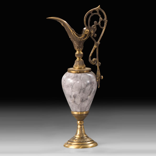 Ваза - кувшин клеопатра из бронзы с эмалью под серый мрамор