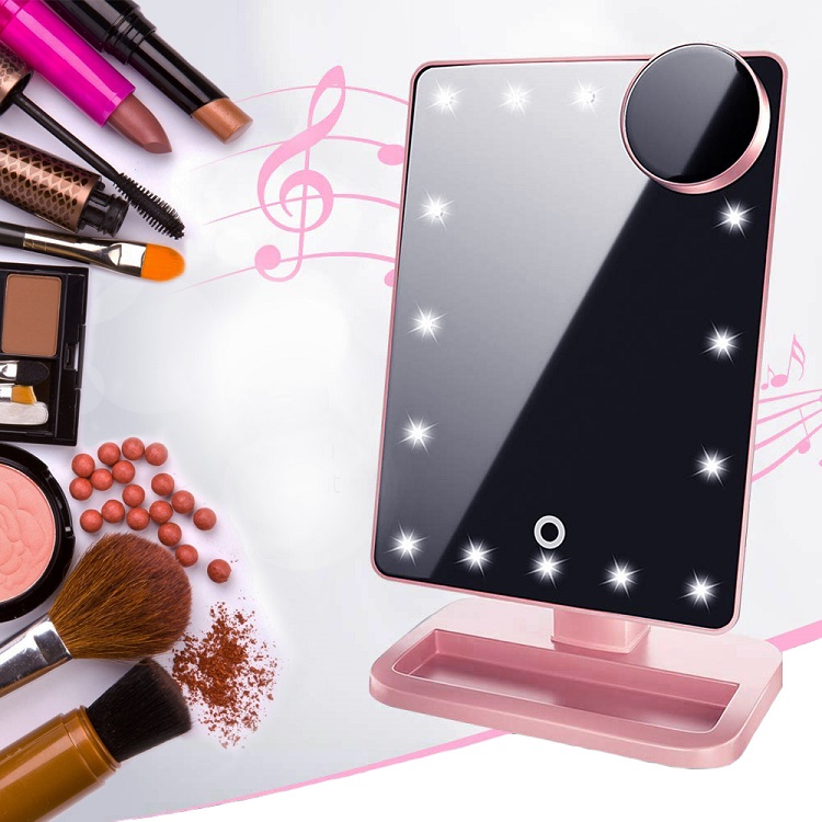 Косметическое зеркало с подсветкой со встроенной Bluetooth колонкой, розов