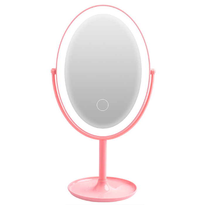 Зеркало с подсветкой на подставке, розовое, 30,5х16,2х11,1 см