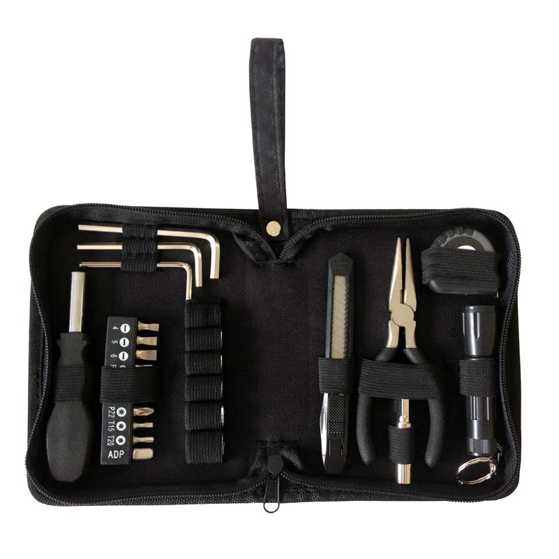 Набор инструментов stinger w0109. Артикул W0109 Производитель STINGER Набор инструментов STINGER W0109 на 26 предметов придется по вкусу тем, кто привык все делать своими руками. С таким комплектом можно произвести практически любой мелкий бытовой ремонт. Все предметы надежно закреплены в чехле, долго искать нужный не придется. Его можно положить в тумбочку, на полку, в шкаф или бардачок машины. Стальные рабочие части отличаются повышенной прочностью и дополнены карбоновыми рукоятками. Для удобства чехол дополнен матерчатой ручкой для переноски. Материал: углепластик (карбон), сталь Размер: 172 х 125 х 42 мм Набор из 26 предметов: - 10 шт. бит; - 10 шт. держатель бит; - 1 шт. удлинитель; - 3 шт. шестигранный ключ; - 1 шт. плоскогубцы длинные; - 6 шт. шестигранные головки; - 1 шт. нож-резак; - 1 шт. метровая рулетка (1 м); - 1 шт. пластиковый фонарик; - 1 шт. чехол на молнии (плотность 600Д) Цвет: черный