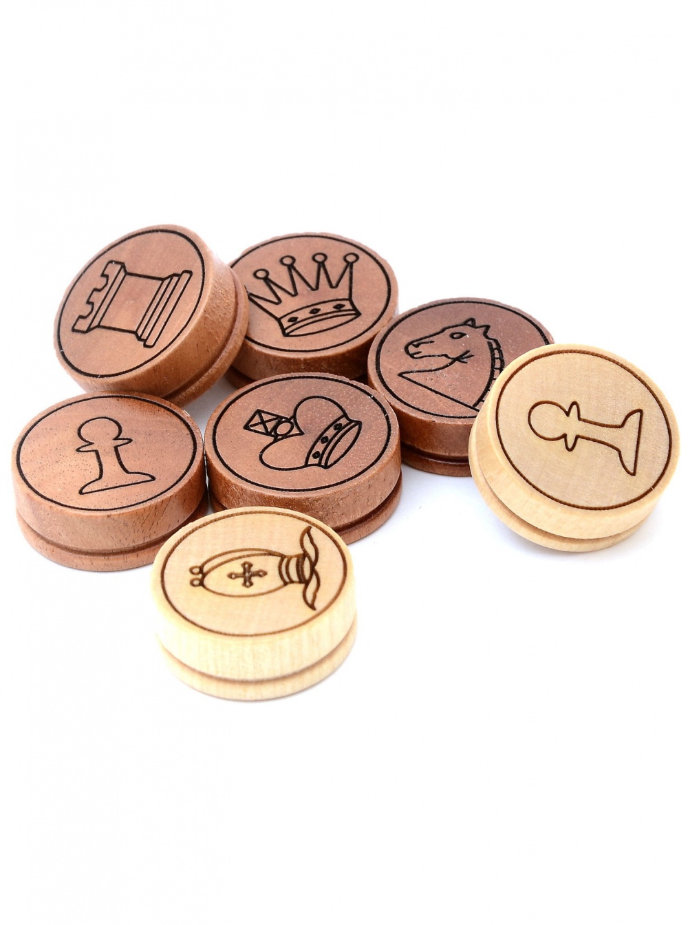 Комплект фишек для шахмат и нард фигуры 29 мм, woodg. Материал Бук Артикул WG-W355 Состояние Новое Упаковка Полиэтиленовый пакет Страна Россия Количество фишек (шт) 16 светлых 16 темных Диаметр Фишки (см) 2,9 Фишки с подложкой Нет