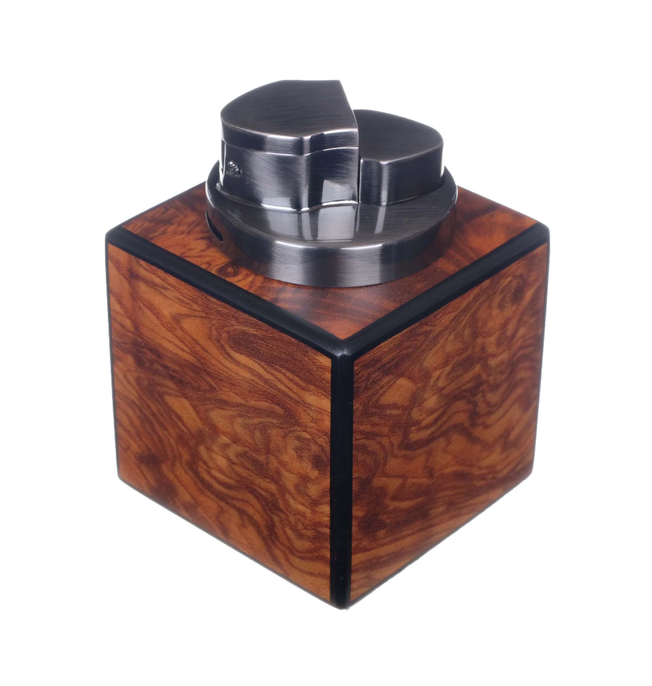 Зажигалка настольная lubinski, вяз. Зажигалка настольная итальянской компании Lubinski. Турбо-механизм газовой зажигалки с 4-мя соплами дает мощное пламя и идеально подходит для прогрева и раскуривания сигар. Для заправки газом и регулировки пламени механизм вынимается из основания. Для настольного сигарного набора идеально сочетается с хьюмидорами и пепельницами Lubinski с отделкой в том же цвете и стиле. Материал Вяз, металл Производитель Lubinski, Италия Размер 6х6х8