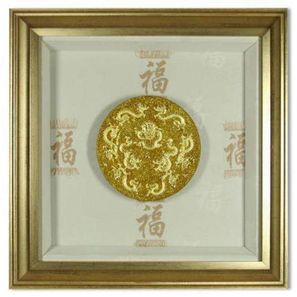 Картина дракон приносящий счастье. Страна:КИТАЙ Материал:дерево, латунь, стекло, текстиль, золотая нить Размер:53х53 см Производство: Xiamen  развернуть описание ▼