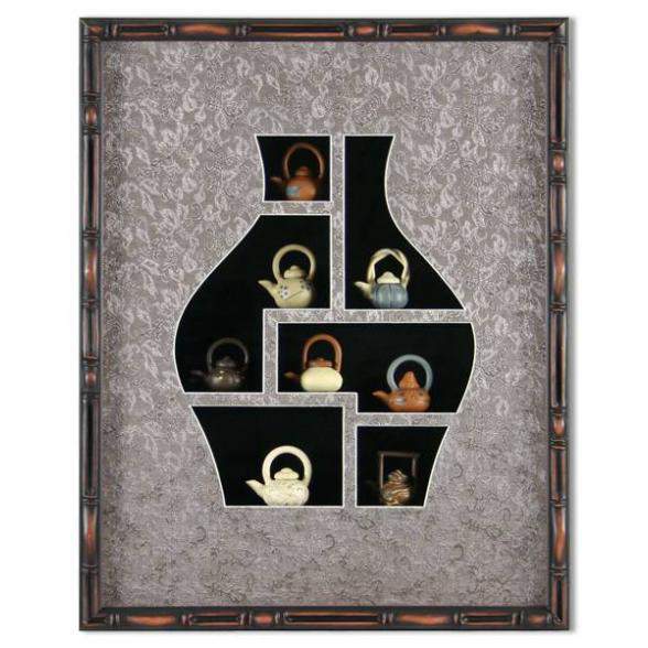 Картина нефритовые чайники. Размер:37х45 см Материал:дерево, текстиль, стекло, нефрит Страна:КИТАЙ Производство: Xiamen  развернуть описание ▼