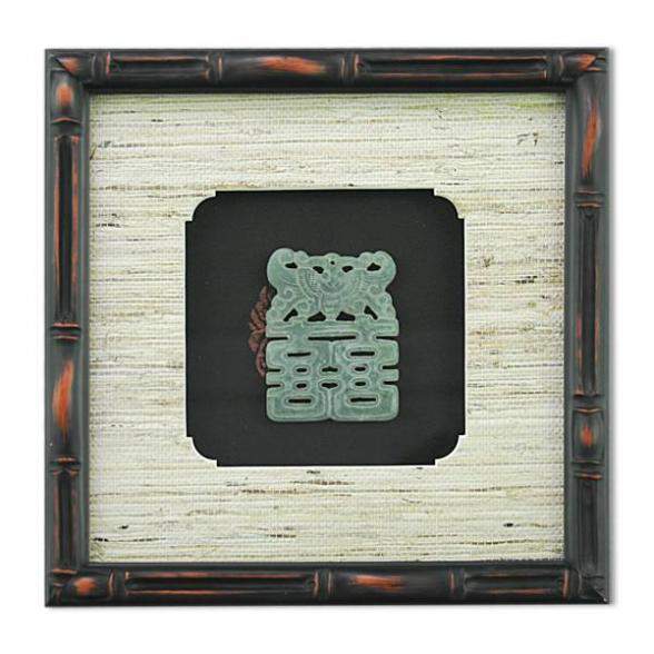 Картина символ удачи из нефрита. Страна:КИТАЙ Материал:дерево, текстиль, стекло, нефрит Размер:22х22 см Производство: Xiamen  развернуть описание ▼